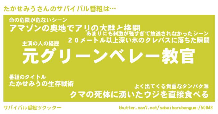 | ヒーロー風カッコイイあだ名 | 『スーパータカセミウ』『魔戒騎士タカ』 |