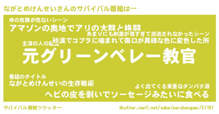 | ツイッター | ながとめけんせいさんのツイッターID『kikurage_kun』 |