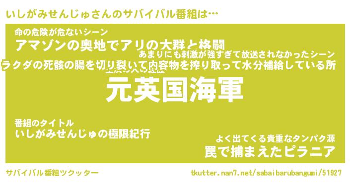 | 胡散臭い通販商品みたいなあだ名 | 『必ず成功するブレスレット…その名も「いしがみせんじゅ」』 |