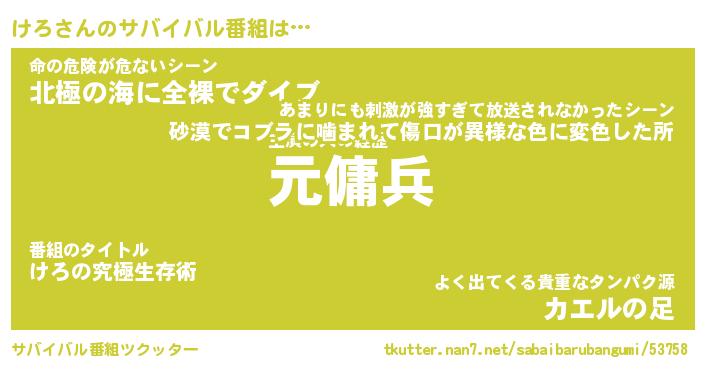 | ヘコむあだ名 | 『けろにー』『酢こんぶ』『けろ(笑)』 |