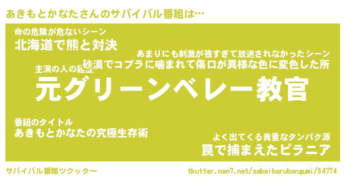 | ヘコむあだ名 | 『あきもー』『なまこ酢』『あき太郎』 |