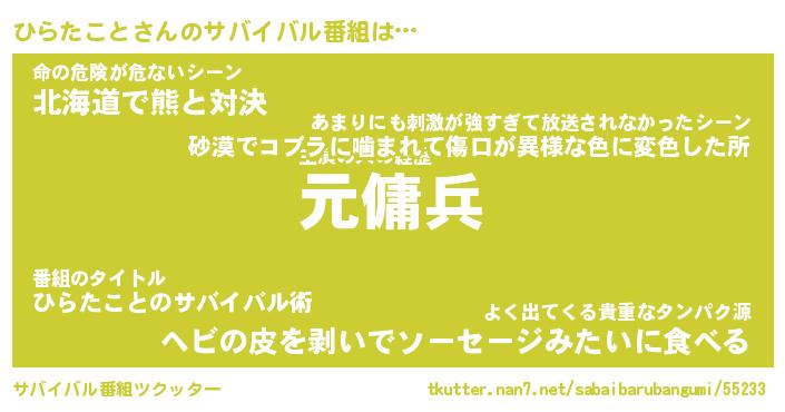 | 伝説のあだ名 | 『封印されし傭兵ひらたこと』 |