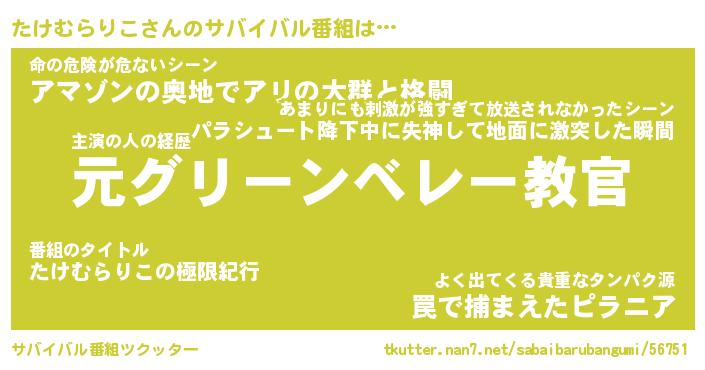 | ヒーロー風カッコイイあだ名 | 『スーパータケムラリコ』『天弓騎士タケ』 |