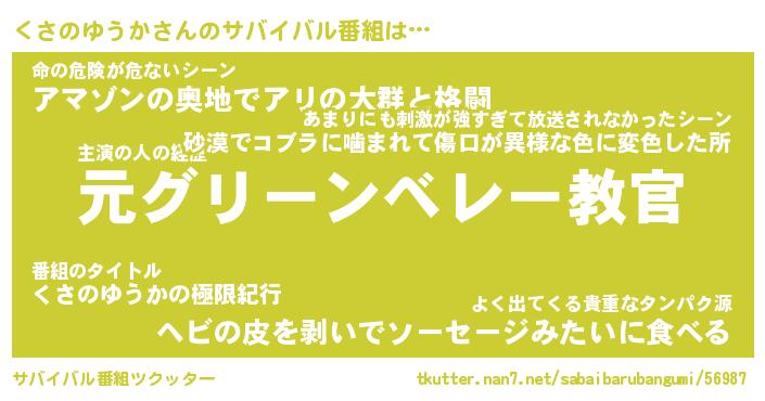 | 伝説のあだ名 | 『不死鳥のスナイパーくさのゆうか』 |