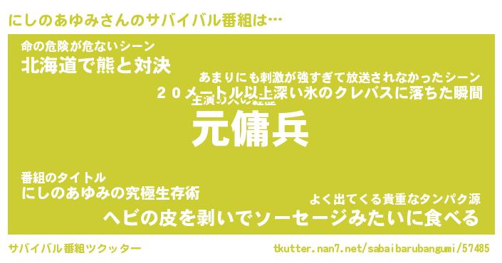 | ヘコむあだ名 | 『にしもー』『なまこ酢』『にし太郎』 |