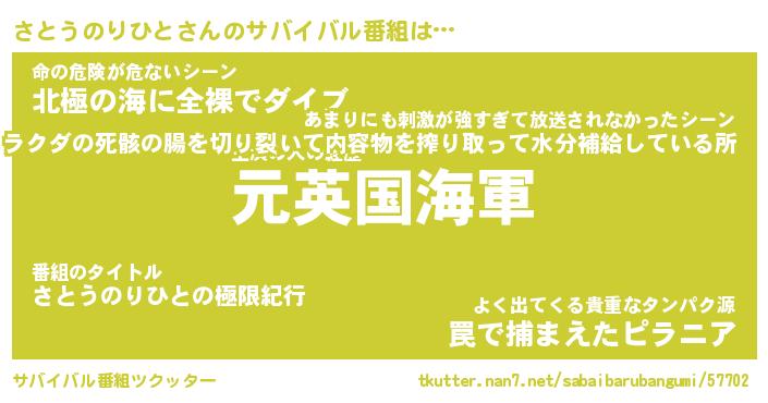 | 伝説のあだ名 | 『伝説のスナイパーさとうのりひと』 |