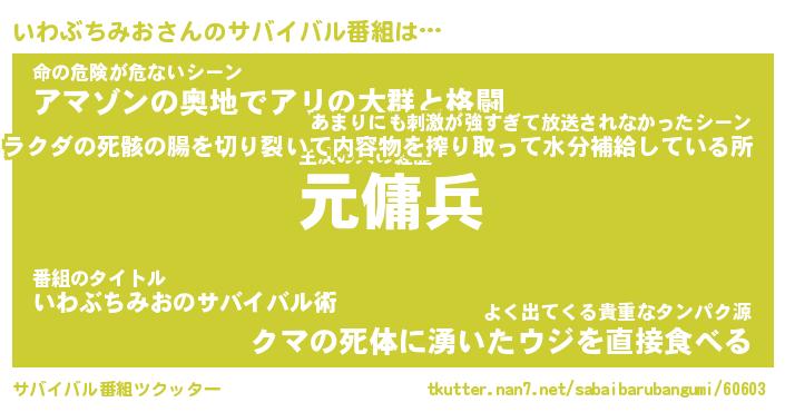 | 胡散臭い通販商品みたいなあだ名 | 『億万長者になれるブレスレット…その名も「いわぶちみお」』 |