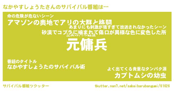 | 胡散臭い通販商品みたいなあだ名 | 『億万長者になれるブレスレット…その名も「なかやすしょうた」』 |