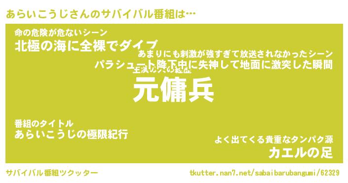 | 胡散臭い通販商品みたいなあだ名 | 『億万長者になれるブレスレット…その名も「あらいこうじ」』 |