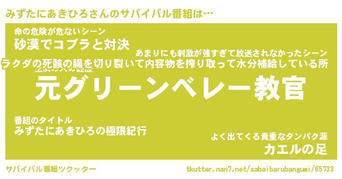 | 伝説のあだ名 | 『不死鳥のスナイパーみずたにあきひろ』 |