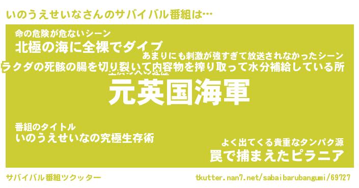 | 胡散臭い通販商品みたいなあだ名 | 『必ず成功するブレスレット…その名も「いのうえせいな」』 |
