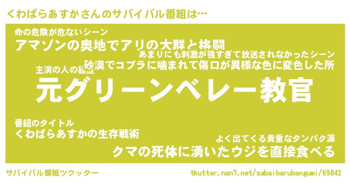 | 胡散臭い通販商品みたいなあだ名 | 『モテモテ間違いなし水晶球…その名も「くわばらあすか」』 |
