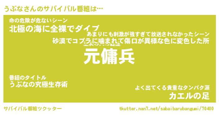 | ヘコむあだ名 | 『うぶにゅー』『つくし』『うぶを』 |