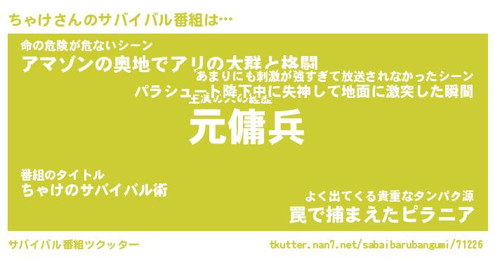 | ヒーロー風カッコイイあだ名 | 『スーパーチャケ』『ウルトラちゃけマン』 |