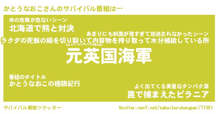 | 伝説のあだ名 | 『伝説の傭兵かとうなおこ』 |