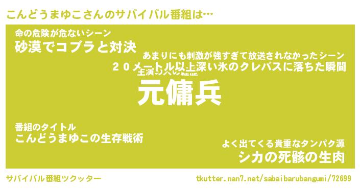 | 胡散臭い通販商品みたいなあだ名 | 『億万長者になれるブレスレット…その名も「こんどうまゆこ」』 |