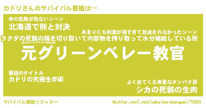 | ヒーロー風カッコイイあだ名 | 『スーパーカドリ』『ウルトラカドリマン』 |