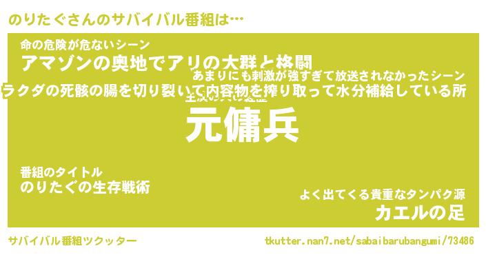 | 胡散臭い通販商品みたいなあだ名 | 『億万長者になれるブレスレット…その名も「のりたぐ」』 |
