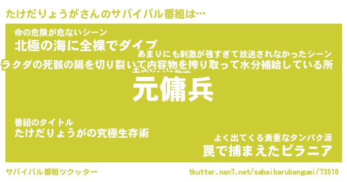 | 胡散臭い通販商品みたいなあだ名 | 『億万長者になれるブレスレット…その名も「たけだりょうが」』 |