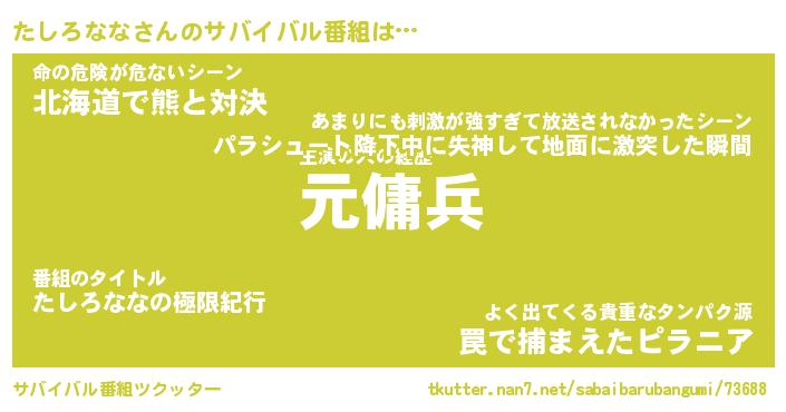 | 胡散臭い通販商品みたいなあだ名 | 『億万長者になれるブレスレット…その名も「たしろなな」』 |