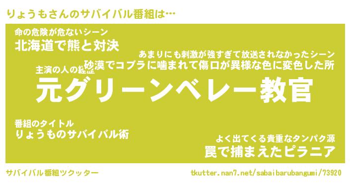 | ヘコむあだ名 | 『りょにゅー』『酢こんぶ』『りょを』 |