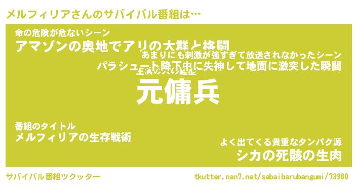 | 胡散臭い通販商品みたいなあだ名 | 『億万長者になれるブレスレット…その名も「メルフィリア」』 |
