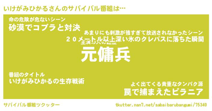 | 胡散臭い通販商品みたいなあだ名 | 『億万長者になれるブレスレット…その名も「いけがみひかる」』 |