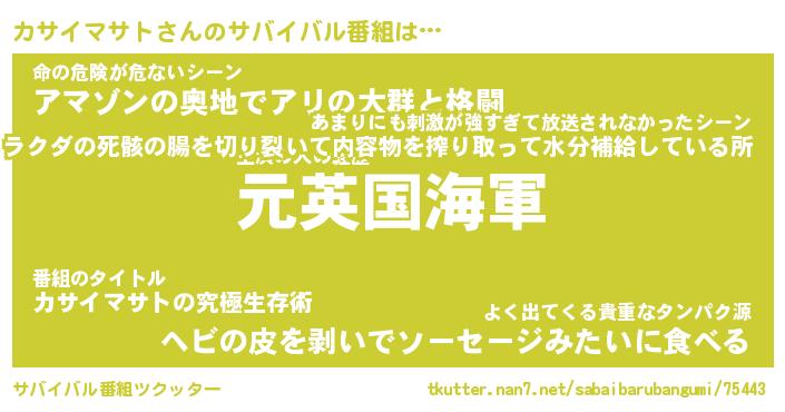 | 肩書あだ名 | 『カサイマサト社長』『カサイマサト班長』 |