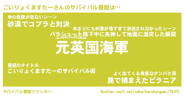 | 伝説のあだ名 | 『伝説の傭兵ごいりょくますたー』 |