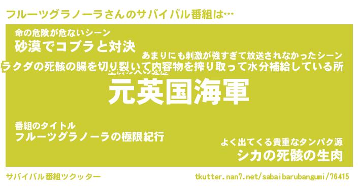 | 欧米人風あだ名 | 『マイケルフルーツグラノーラ』 |
