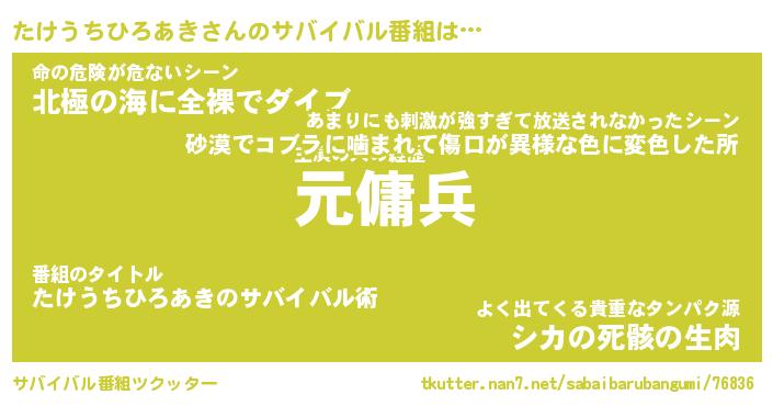 | 胡散臭い通販商品みたいなあだ名 | 『億万長者になれるブレスレット…その名も「たけうちひろあき」』 |