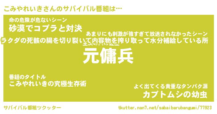 | 伝説のあだ名 | 『封印されし傭兵こみやれいき』 |