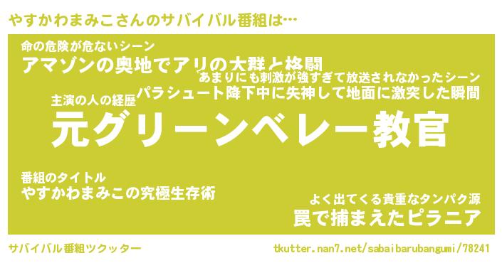 | 伝説のあだ名 | 『不死鳥のスナイパーやすかわまみこ』 |
