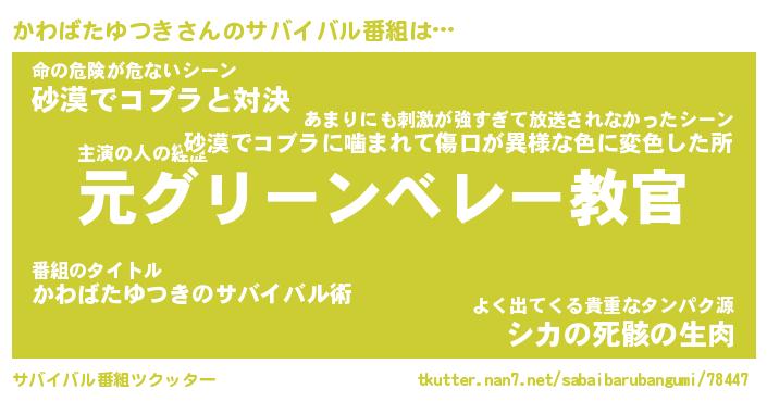 | 胡散臭い通販商品みたいなあだ名 | 『必ず成功するブレスレット…その名も「かわばたゆつき」』 |