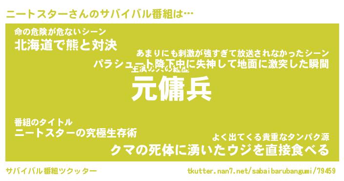 | ヒーロー風カッコイイあだ名 | 『スーパーニートスター』『魔戒騎士ニー』 |