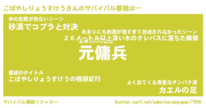 | 胡散臭い通販商品みたいなあだ名 | 『億万長者になれるブレスレット…その名も「こばやしりょうすけう」』 |