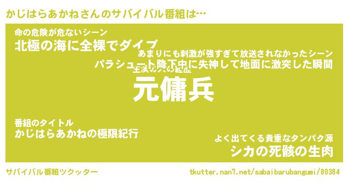 | 伝説のあだ名 | 『封印されし傭兵かじはらあかね』 |