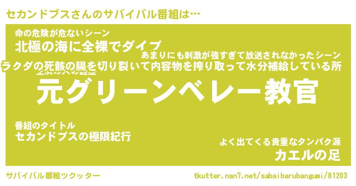 | ヒーロー風カッコイイあだ名 | 『スーパーセカンドブス』『炎刃騎士セカ』 |