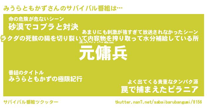 | 胡散臭い通販商品みたいなあだ名 | 『億万長者になれるブレスレット…その名も「みうらともかず」』 |