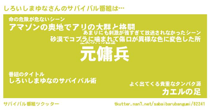 | 伝説のあだ名 | 『封印されしスナイパーしろいしまゆな』 |