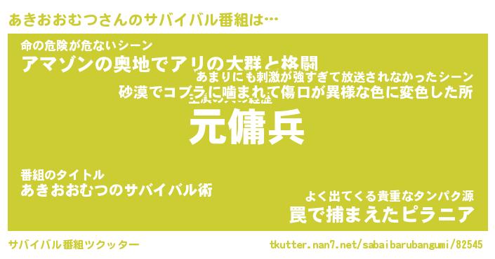 | 胡散臭い通販商品みたいなあだ名 | 『億万長者になれるブレスレット…その名も「あきおおむつ」』 |