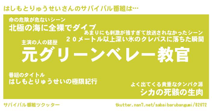 | 伝説のあだ名 | 『不死鳥のスナイパーはしもとりゅうせい』 |