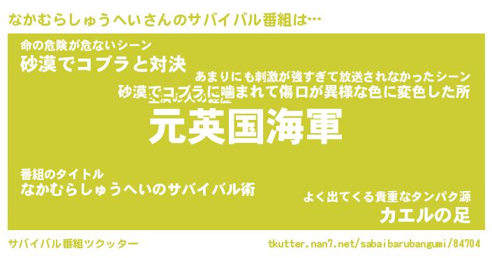 | 胡散臭い通販商品みたいなあだ名 | 『必ず成功するブレスレット…その名も「なかむらしゅうへい」』 |