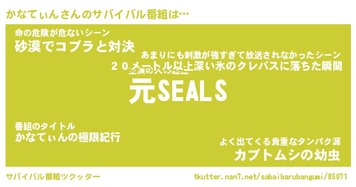 | ヒーロー風カッコイイあだ名 | 『スーパーカナティン』『黄金騎士カナ』 |