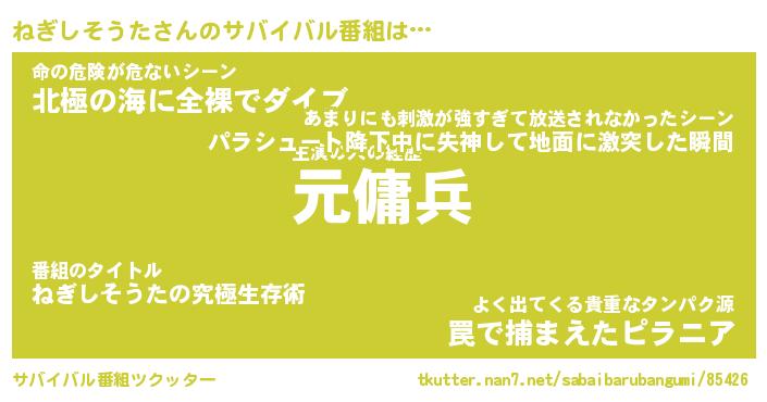 | ヒーロー風カッコイイあだ名 | 『スーパーネギシソウタ』『天弓騎士ネギ』 |