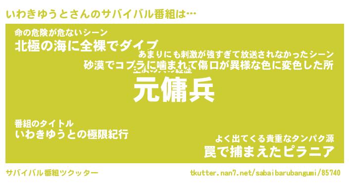 | ヒーロー風カッコイイあだ名 | 『スーパーイワキユウト』『天弓騎士イワ』 |