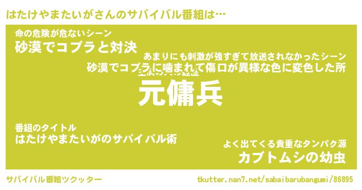 | 伝説のあだ名 | 『封印されしスナイパーはたけやまたいが』 |