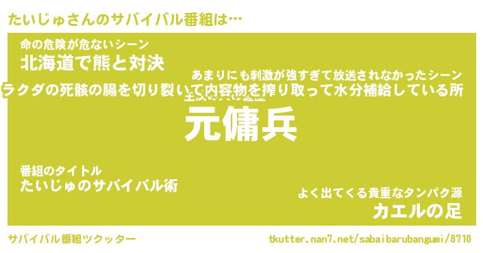 | 胡散臭い通販商品みたいなあだ名 | 『億万長者になれる霊験あらたかなお札…その名も「たいじゅ」』 |