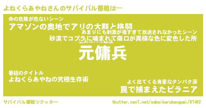 | 胡散臭い通販商品みたいなあだ名 | 『億万長者になれるブレスレット…その名も「よねくらあやね」』 |