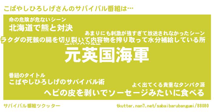 | ヘコむあだ名 | 『こばにー』『牛乳』『こば太郎』 |